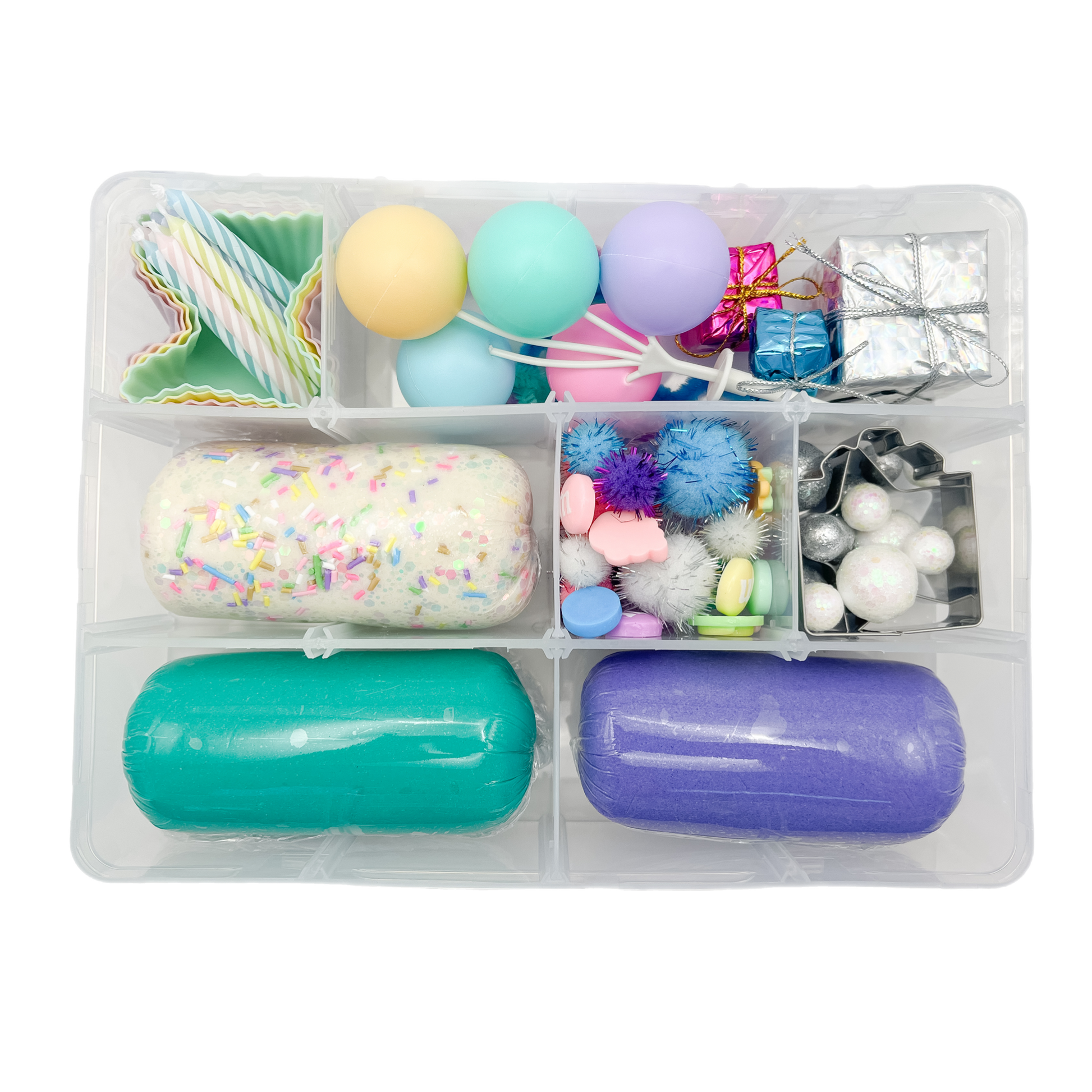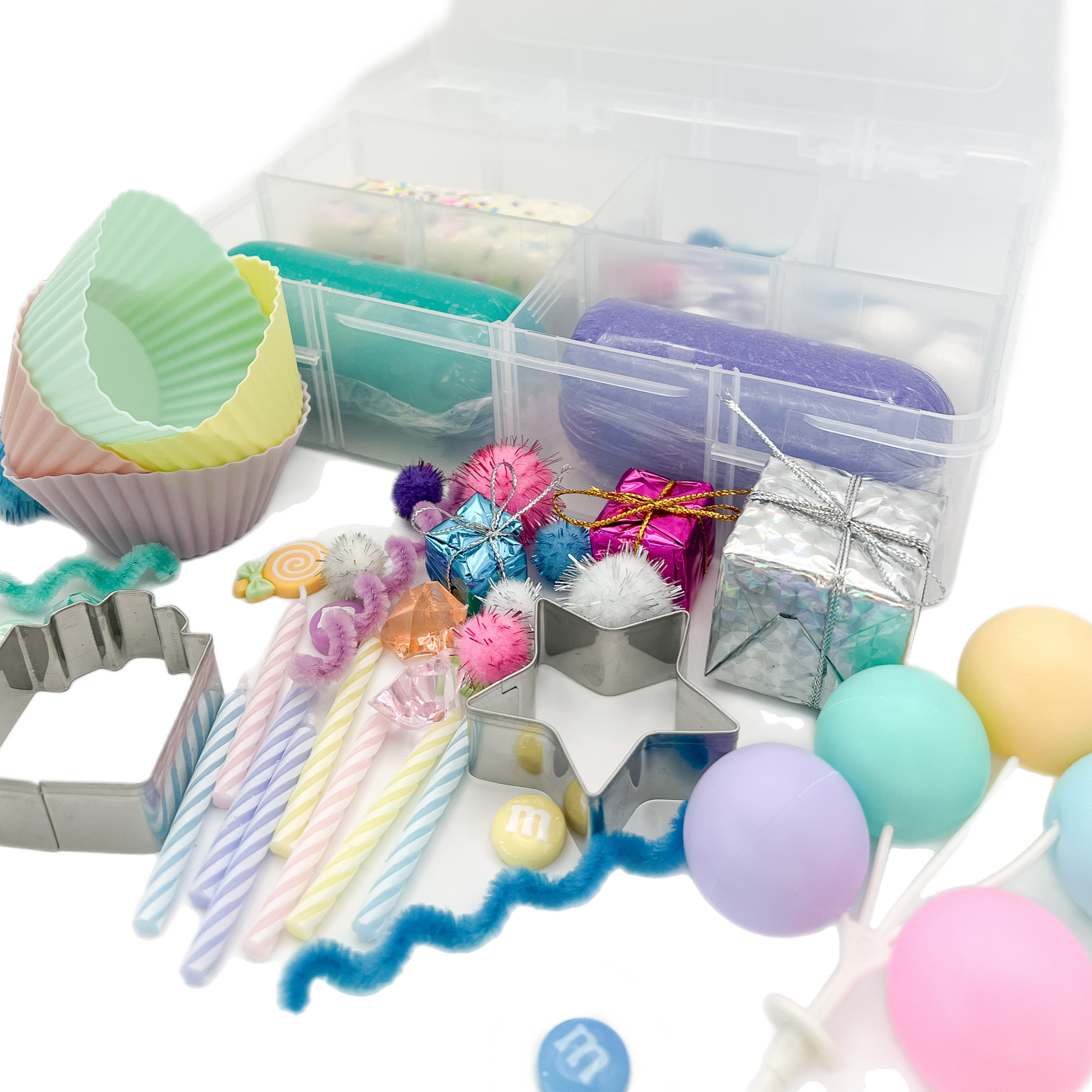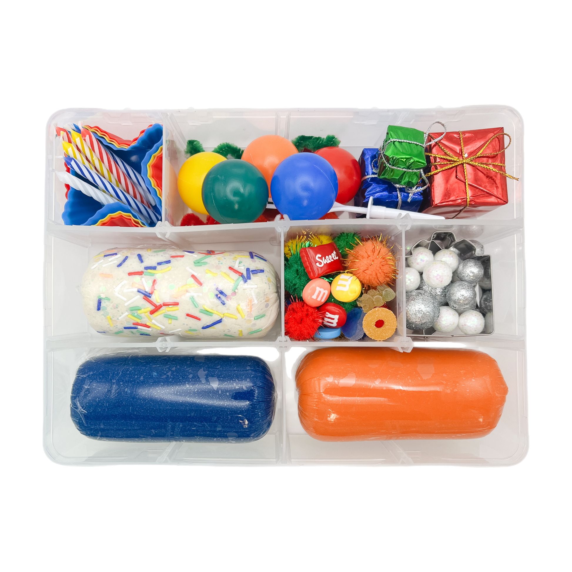 Add a sprinkle of fun to your little one's playtime with our It's a Party Bizee Box! Crafted with care, this box features homemade unscented playdough and delightful sprinkle playdough that will captivate their imaginations. Let them explore the world of sensory play with the included birthday molds, balloons, cupcake liners, and candles. Enhance their creativity, motor skills, and social interaction as they celebrate joyously with this sensational sensory party experience!