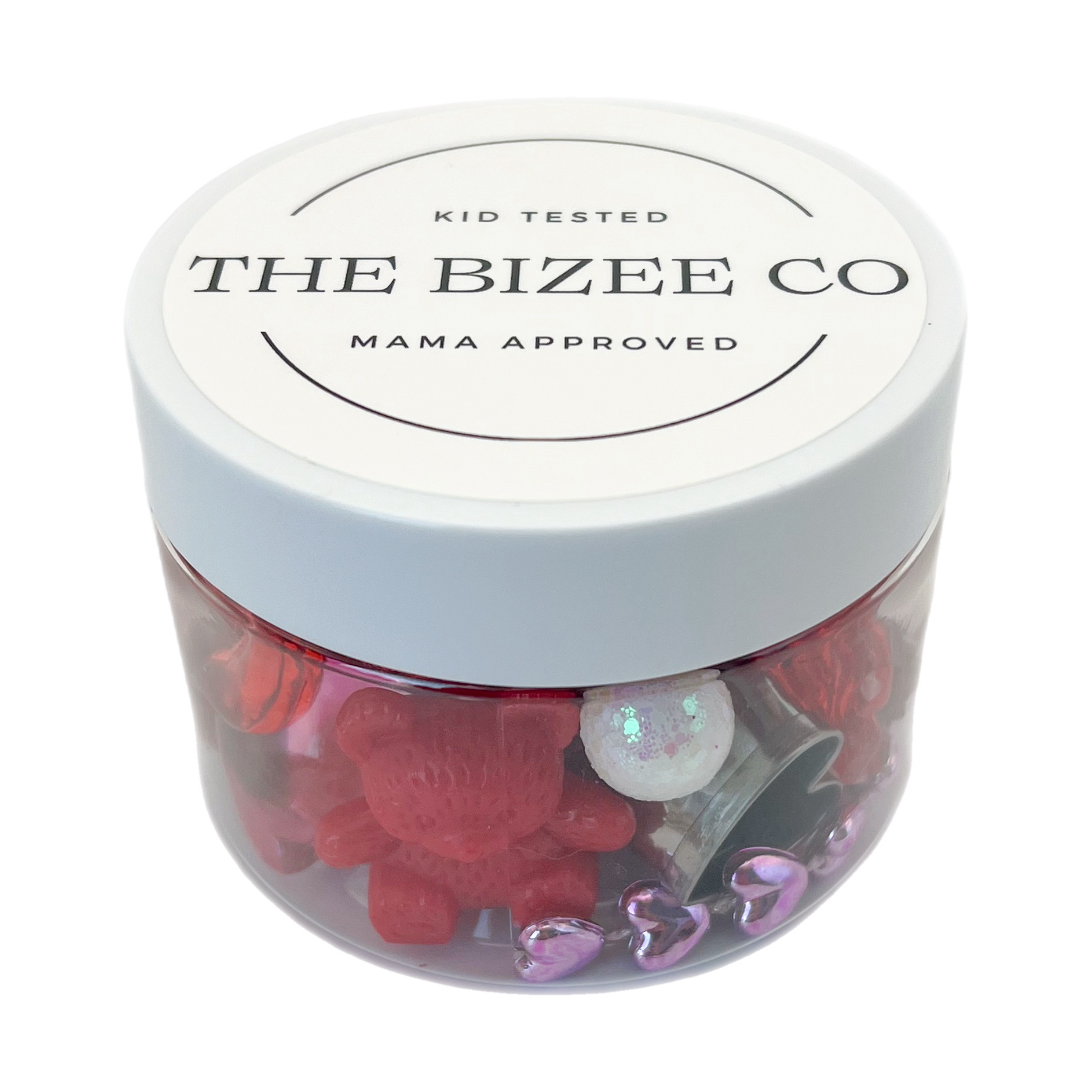 Valentine's Day is all about spreading love and joy, and our Valentine Love You Beary Much Bizee Jar is here to help! Inside this jar, you'll find homemade unscented playdough ready to spark endless fun and imaginative adventures. With a charming teddy bear and Valentine's embellishments, this jar makes a fantastic gift for your friend or classmate. Encourage creativity and share some magical moments this Valentine's Day with our delightful Bizee Jar! Each jar contains 3.5 Oz of playdough and trinkets and embellishments to fit the theme.